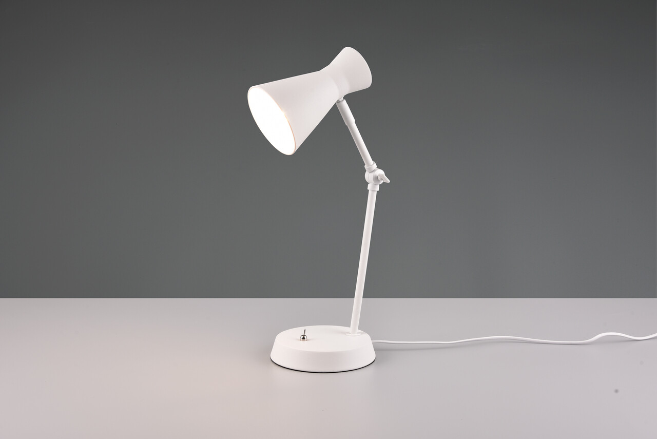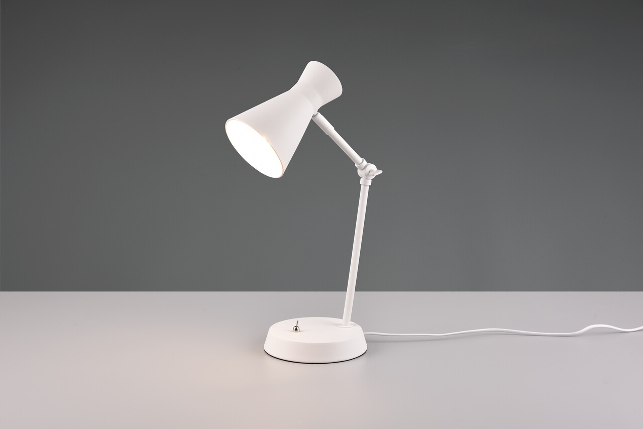 Lampa de masă Enzo, cu dimensiuni de 16.7x23.3x50.1 cm și putere de 10W, se evidențiază prin designul său minimalist și alb mat, perfect pentru amenajările interioare moderne. Această lampă oferă o iluminare optimă, fiind ideală atât pentru zonele de lucru, cât și ca lampă de noptieră, asigurând o lumină eficientă și plăcută. Intrerupătorul de pe baza sa facilitează utilizarea. Se recomandă utilizarea unui bec LED pentru o iluminare uniformă, având o durată lungă de viață și generând puțină căldură. Becul nu este inclus. Grad de protecție: IP20, tensiune: 230V ~ 50Hz, soclu: 1x E27, clasa de eficiență F.