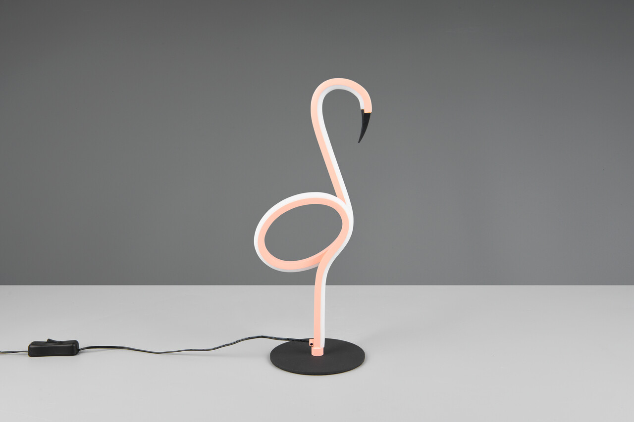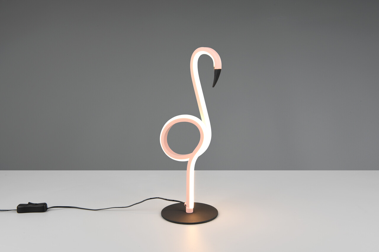 Lampa de masă INGO aduce o notă de eleganță jucăușă în orice încăpere. Având forma unui flamingo, aceasta devine un adevărat punct de atracție, captând privirile în living sau în camera unui adolescent. Designul său inedit creează accente sofisticate, iar întrerupătorul cu fir facilitează utilizarea. Cu tehnologie LED modernă, lampa oferă o lumină de calitate superioară, având o durată de viață de 30.000 ore și consum redus de energie. Cu un flux luminos de 550 lumeni și o temperatură de culoare de 3000K, lampa INGO este ideală pentru a aduce un strop de fler tropical în casa ta.