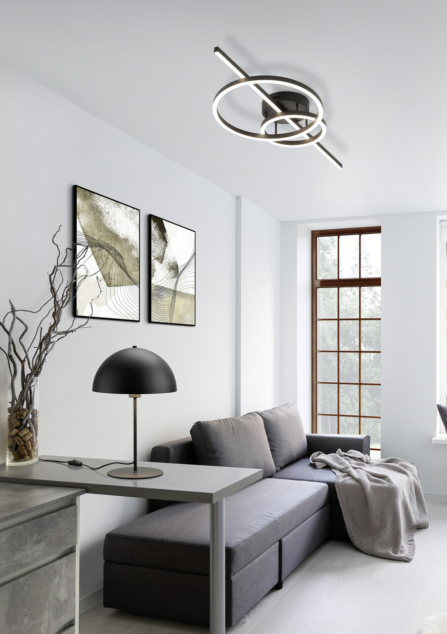Lampa de masă NOLA, cu dimensiunile de 30x45 cm, aduce un aer purist și clasic oricărui interior. Designul său modern, inspirat de forma de ciupercă, se integrează armonios pe comode sau noptieri. Fabricată din metal cu finisaj negru mat și detalii aurii, lampa este ușor de utilizat datorită întrerupătorului cu fir. Recomandăm utilizarea unui bec LED pentru o iluminare eficientă și de calitate, având o durată lungă de viață și generând puțină căldură. Brandul TRIO garantează inovație și versatilitate în fiecare produs.