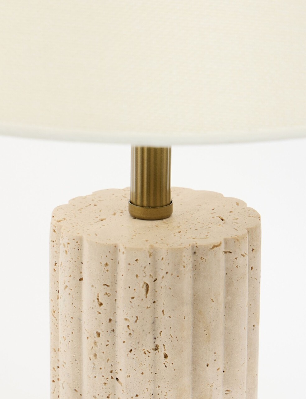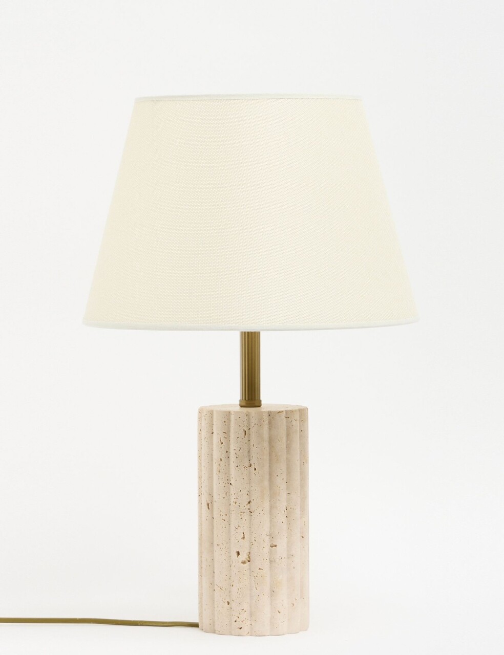 Lampa de masaAbajul din material textilDimensiunea capacului: Ø30 h: 20 cmInaltime totala: 48 cmLungimea cablului: 150 cmButon de pornire/oprire pe cabluTip soclu: 1 x E 27Becul nu este inclus220-240 VGrad de protectie: IP20