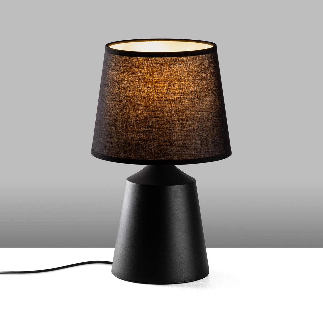 Lampa de masaAbajul din material textilMarime: 28 x 28 x 49 cmDimensiunea capacului: Ø22-28h:22 cmLungimea cablului: 200 cmButon de pornire/oprire pe cabluTip soclu: 1 x E 27 Max 40 WBecul nu este inclus220-240 VGrad de protectie: IP20