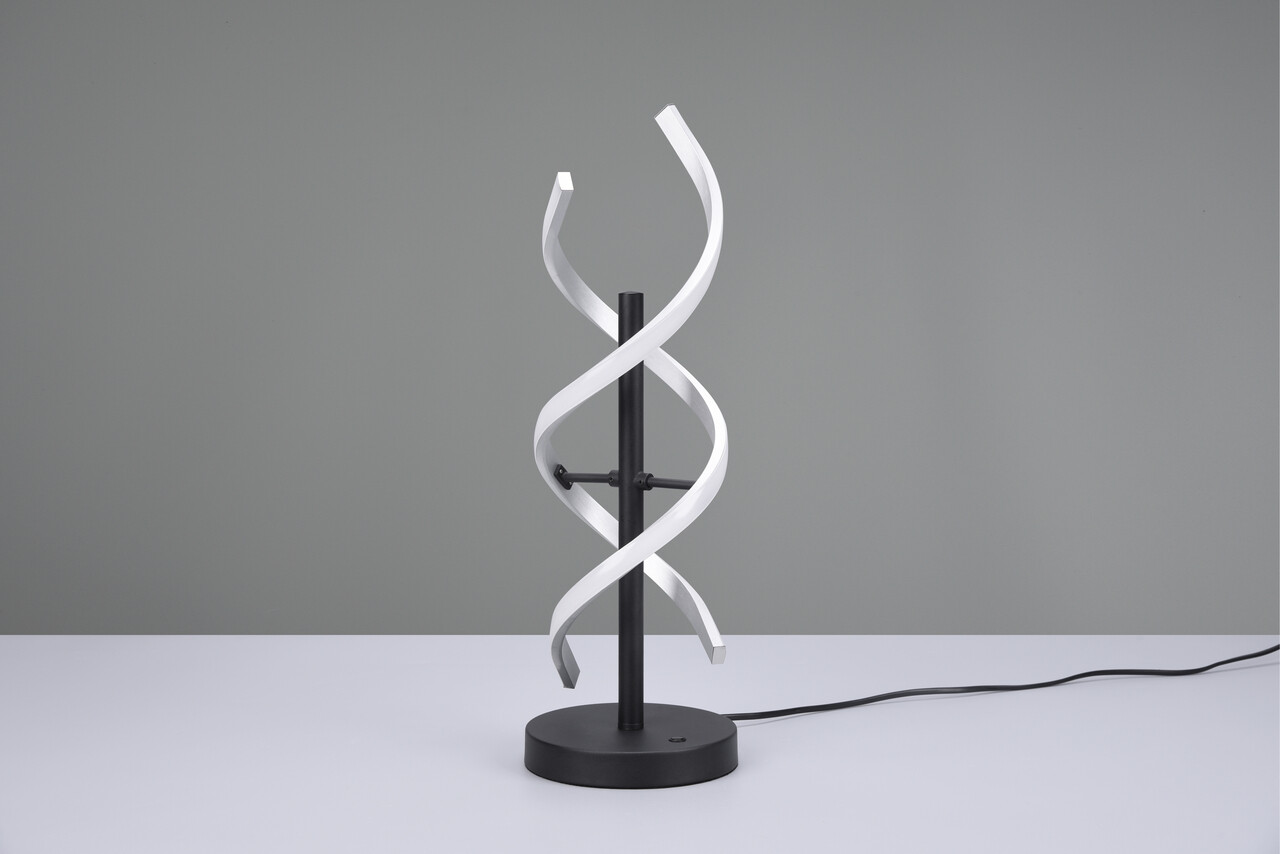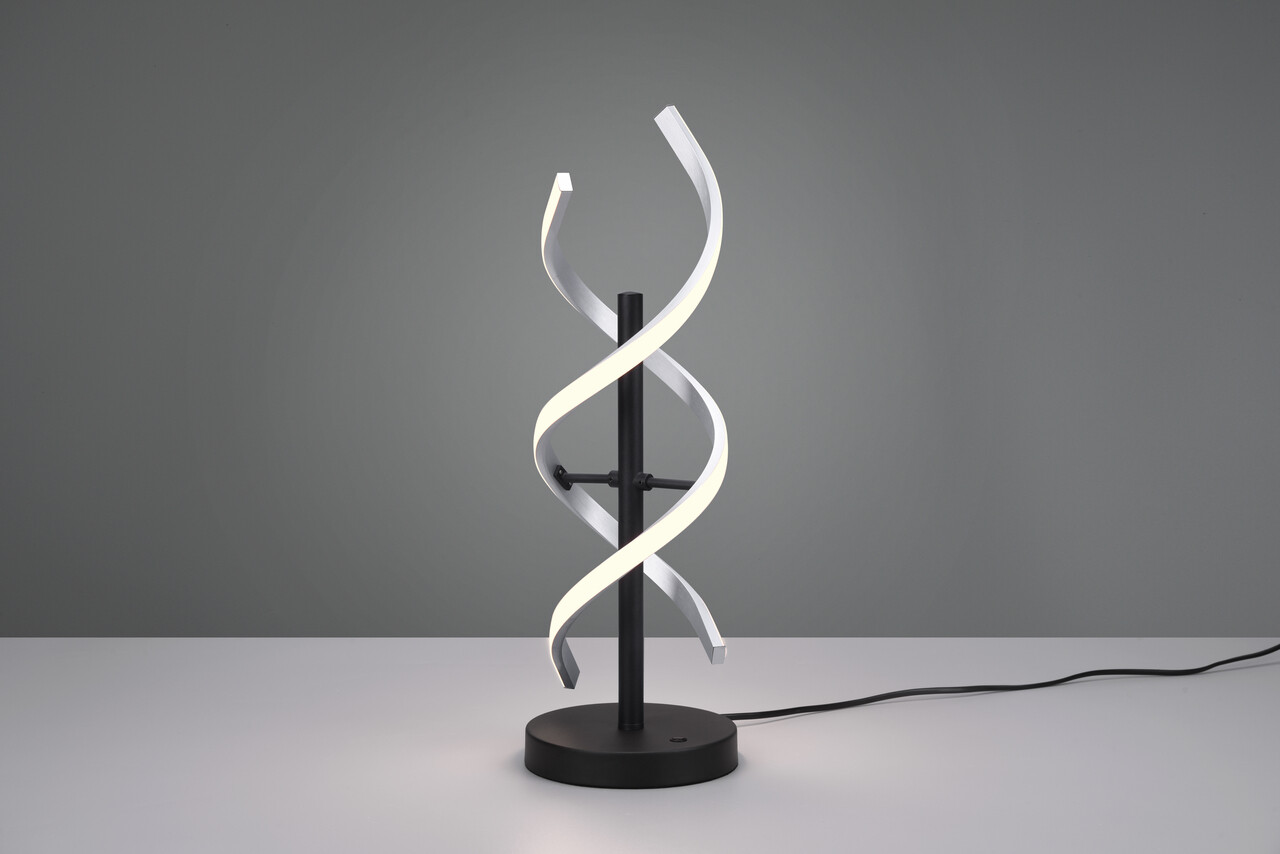 Lampa de masă Sequence de la TRIO impresionează prin designul său atrăgător și elegant, având o formă de spirala ce captează atenția în orice ambient. Cu un variator de intensitate integrat, luminozitatea poate fi ajustată continuu, iar cele trei culori de lumină (alb cald, alb neutru, alb natural) sunt reglabile în trepte. Combinatia de negru mat și metal adaugă accente rafinate în decorul casei. Tehnologia LED modernă asigură o calitate superioară a luminii, o durată de viață de până la 30.000 de ore și o generare redusă de căldură, oferind un iluminat eficient și plăcut.