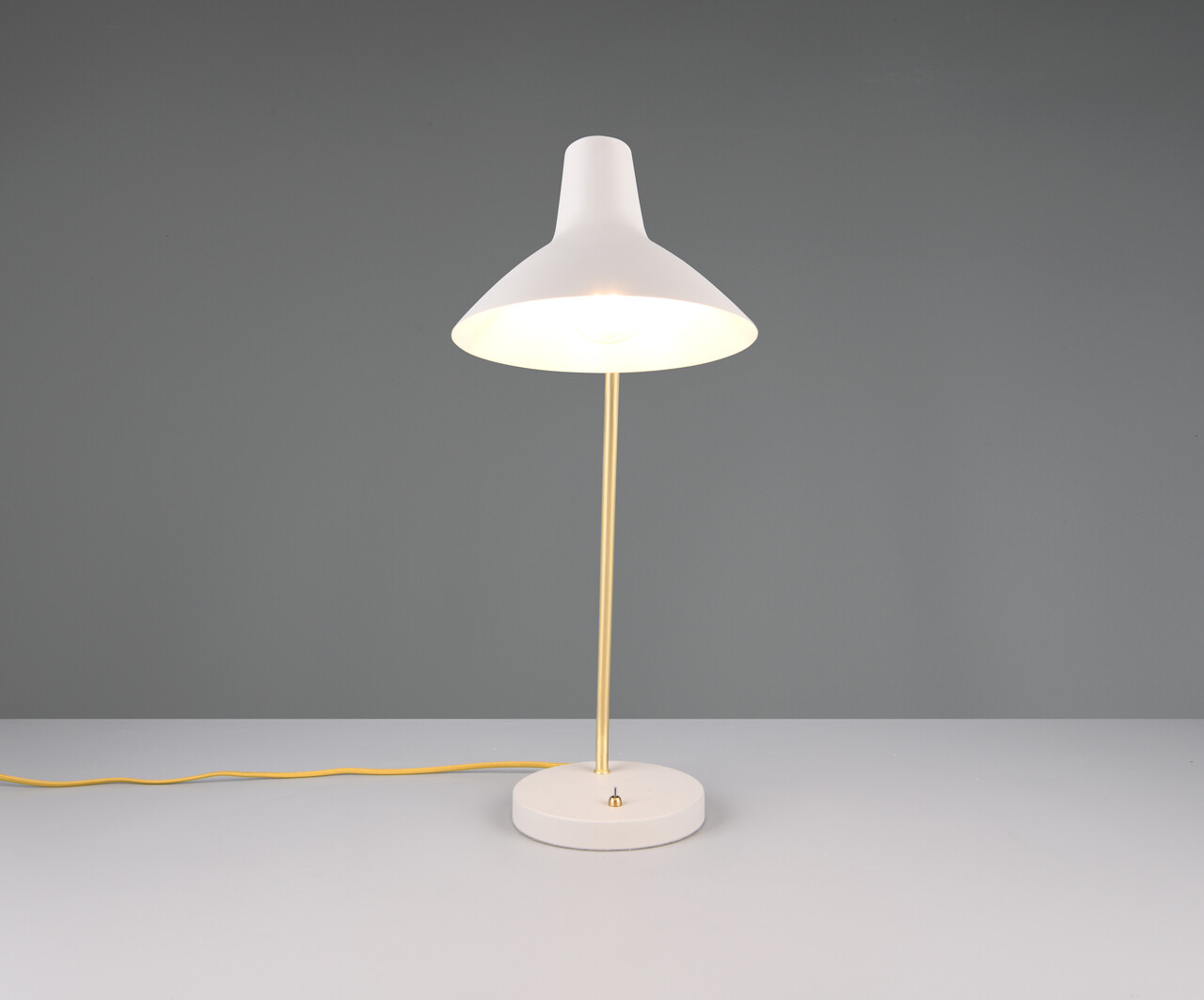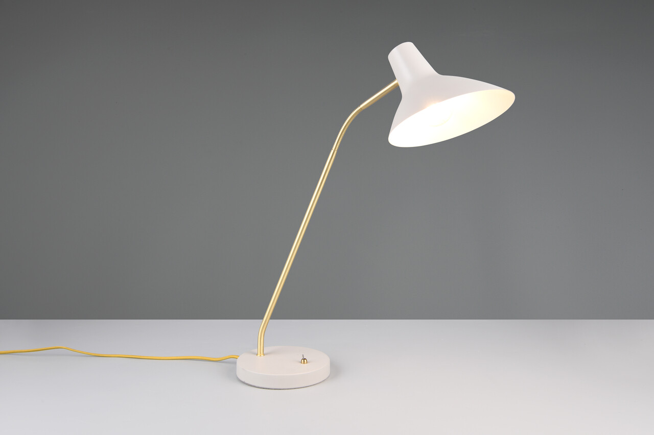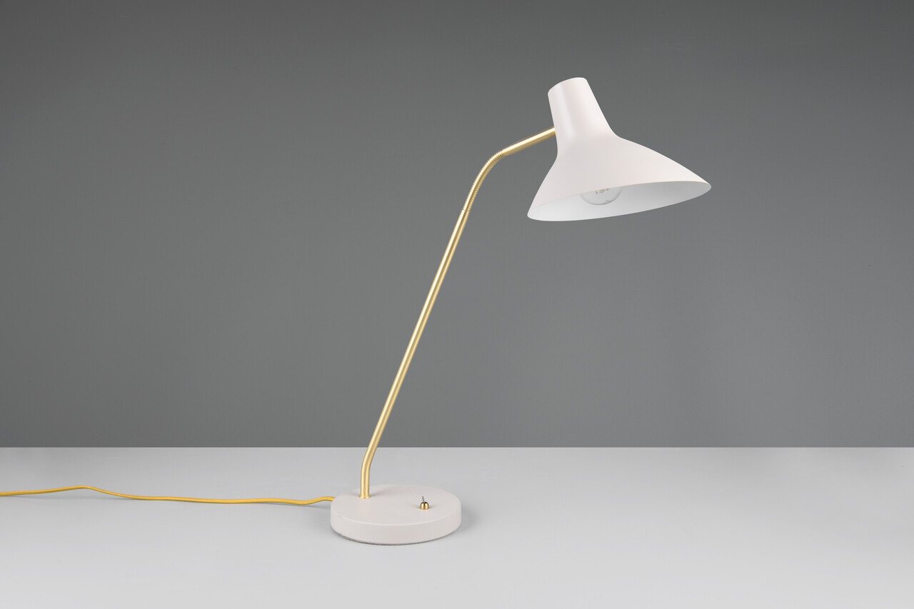 Lampa de masă Traveller 50x20x54 cm, 10W, 1x E27, metal gri/auriu, îmbină designul elegant cu funcționalitatea flexibilă. Cu un braț reglabil, această lampă se adaptează cu ușurință nevoilor dumneavoastră, fiind ideală atât pentru birou, cât și ca sursă de lumină pe un bufet. Abajurul modern și rama elegantă completează perfect diferite stiluri de mobilier. Pentru o iluminare eficientă, se recomandă utilizarea unui bec LED, care oferă o calitate superioară a luminii și o durată lungă de viață. Brandul TRIO garantează inovație și stil în fiecare detaliu.