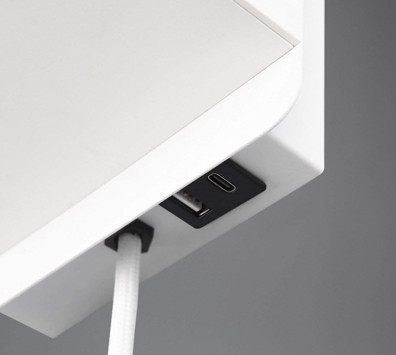 Lampa de perete Comfort TRIO 16x18x31 cm 40W 1x E14 în stil alb mat combină designul elegant cu funcționalitatea practică. Abajurul din material textil creează o atmosferă confortabilă și o distribuție plăcută a luminii. Cu stația de încărcare inductivă integrată și opțiunile USB și USB-C, este ideală pentru dormitor. Funcția FLEXconnect permite utilizarea ușoară, iar rama metalică asigură stabilitate și durabilitate. Se recomandă utilizarea unui bec LED pentru o iluminare modernă și eficientă, cu durată lungă de viață și generare redusă de căldură.