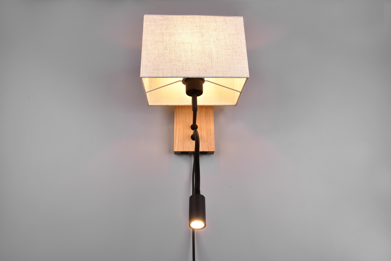 Lampa de perete Nilam TRIO 25x30 cm 28W / 3W 1x E27 / 1x SMD lemn natur/negru